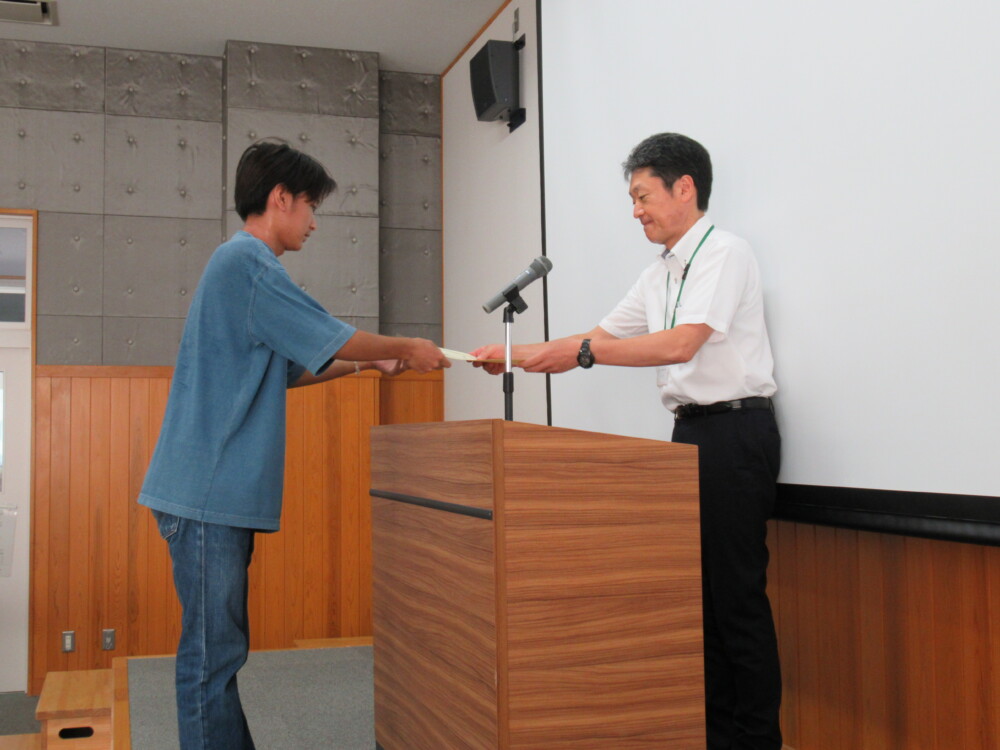 約1カ月の夏休みが終わり、本日生徒が登校し納め式と休業明け集会を行いました。休み中に東京で行われた全国大会で第5位に入賞した男子ソフトテニス部が賞状を納めました。その他のクラブも全国大会で活躍し、その健闘を労う拍手が全校生徒より送られました。