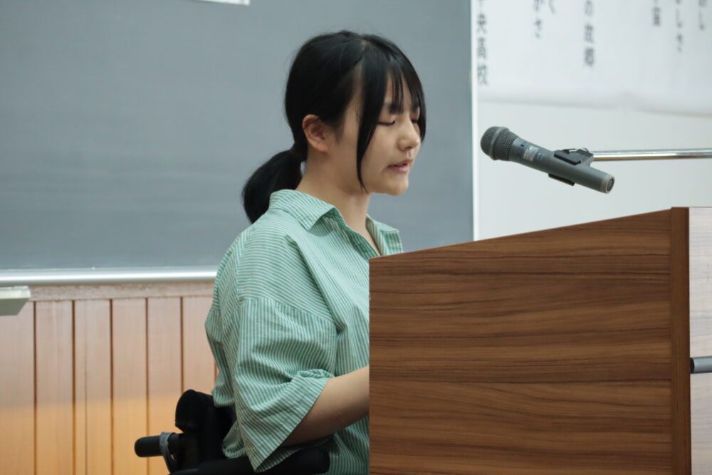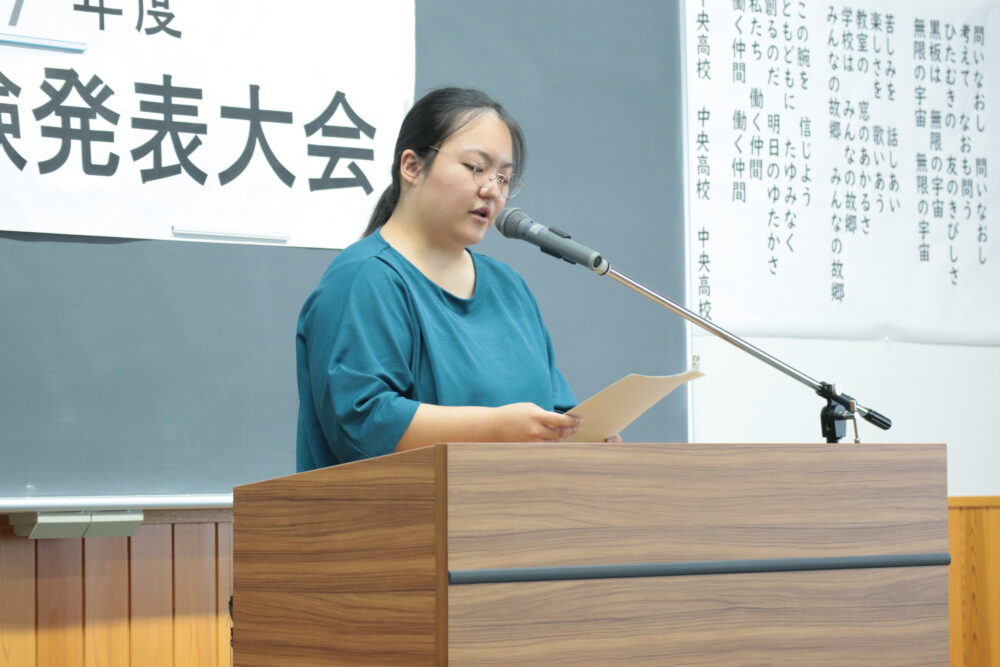 山梨県立中央高等学校 > 定時制 > 定時制ブログ > 生活体験発表大会 2025年10月3日カテゴリー: 定時制 定時制ブログ 生活体験発表大会 2025年9月17日(水) 夏休み中の宿題として、学校生活を通して感じ学んだ貴重な体験を発表することを目的とした生活体験文の校内発表大会を行いました。クラスの代表が各部生徒の前で発表し、最優秀に選ばれた1名が10月15日(水)に学校代表として山梨県の全定時制・通信制生徒の前で発表します。