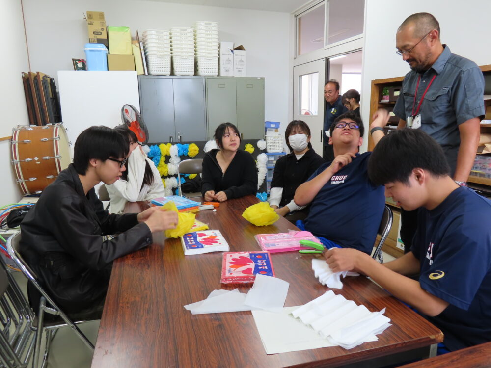 明日の1日目は文化部門では文化部・同好会の発表と展示、体育部門ではブロック対抗による玉入れ等の競技を行います。※本校の学園祭は一般公開はしておりません。