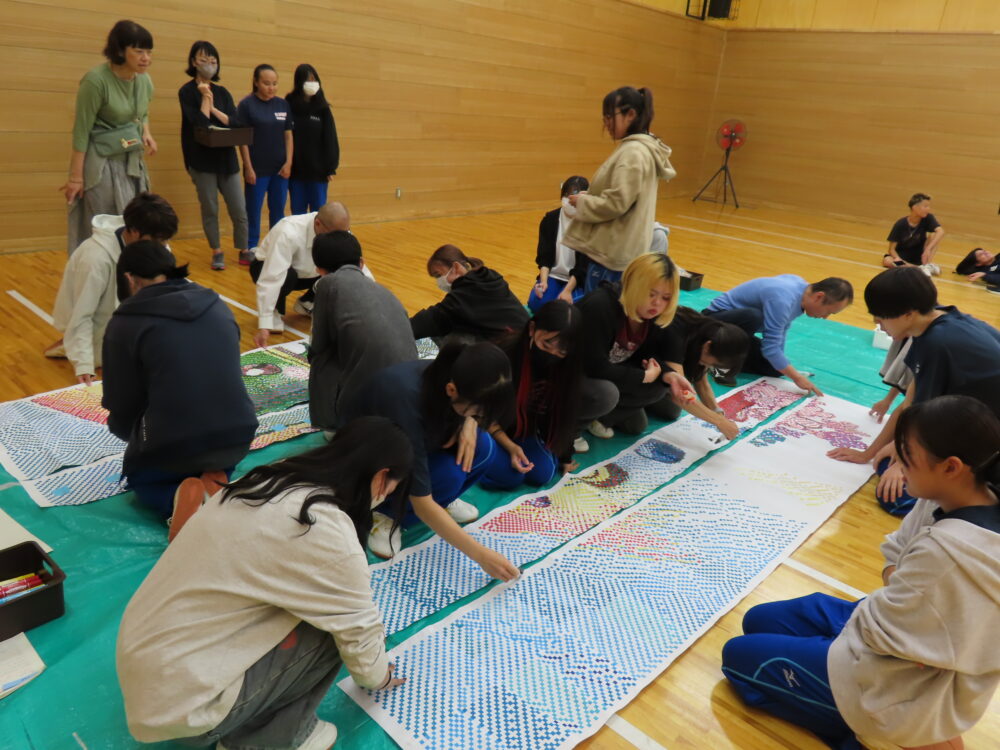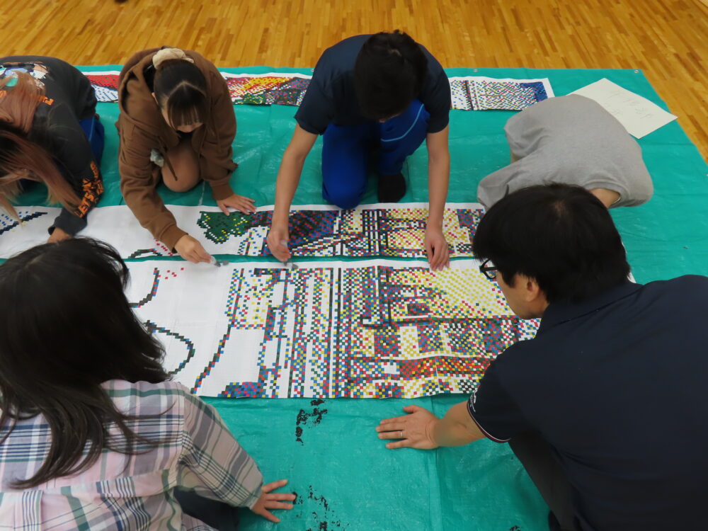 全校制作のモザイクアートでは、各クラスで作成したものが集まり一つになった瞬間、生徒たちから拍手が湧きあがりました。