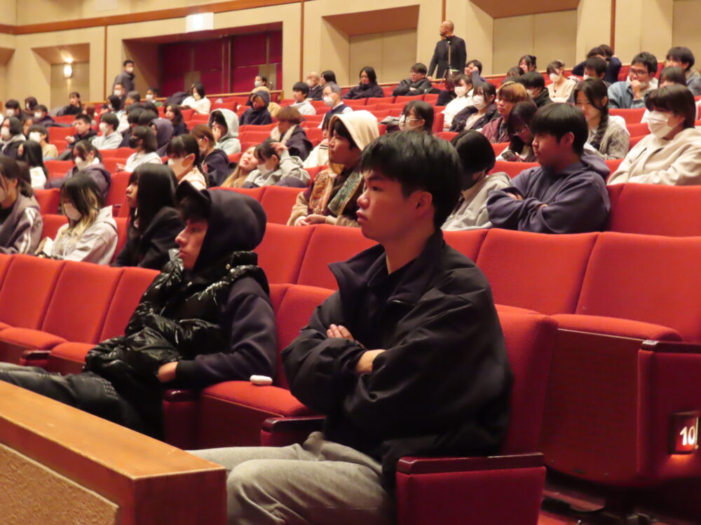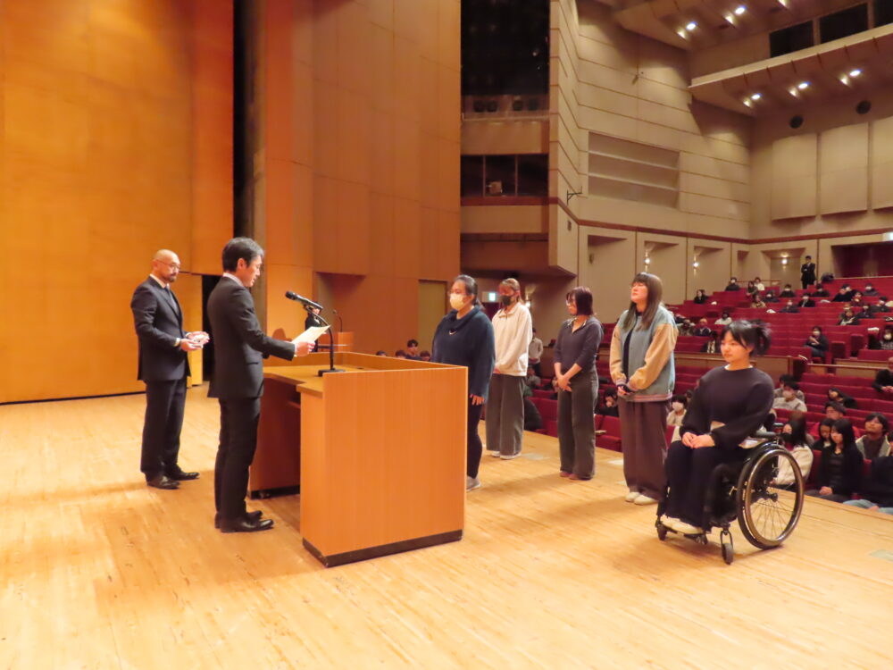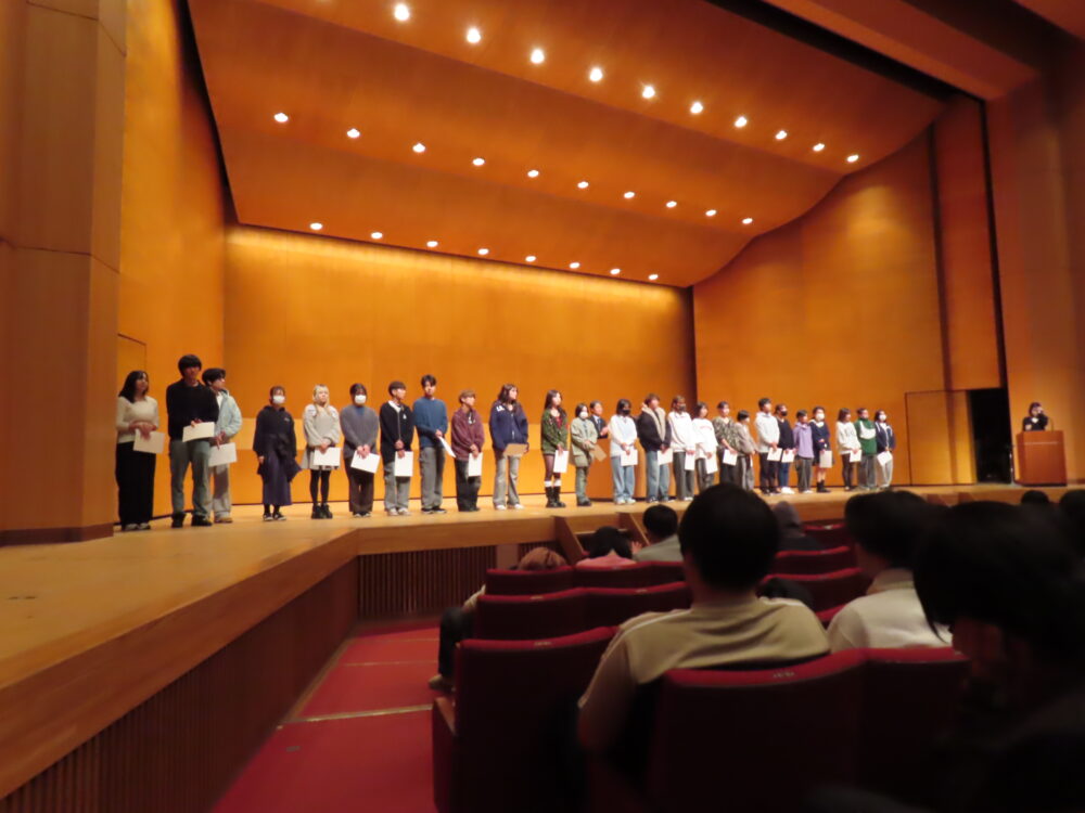 コンサートの後は、生活体験文の校内の表彰や、教育祭等で表彰された生徒が学校に賞状等を納めた後、冬休みに入る前の休業前集会を行いました。明日より19日間の冬休みになります。健康や交通事故等に気を付けて元気に過ごしましょう。