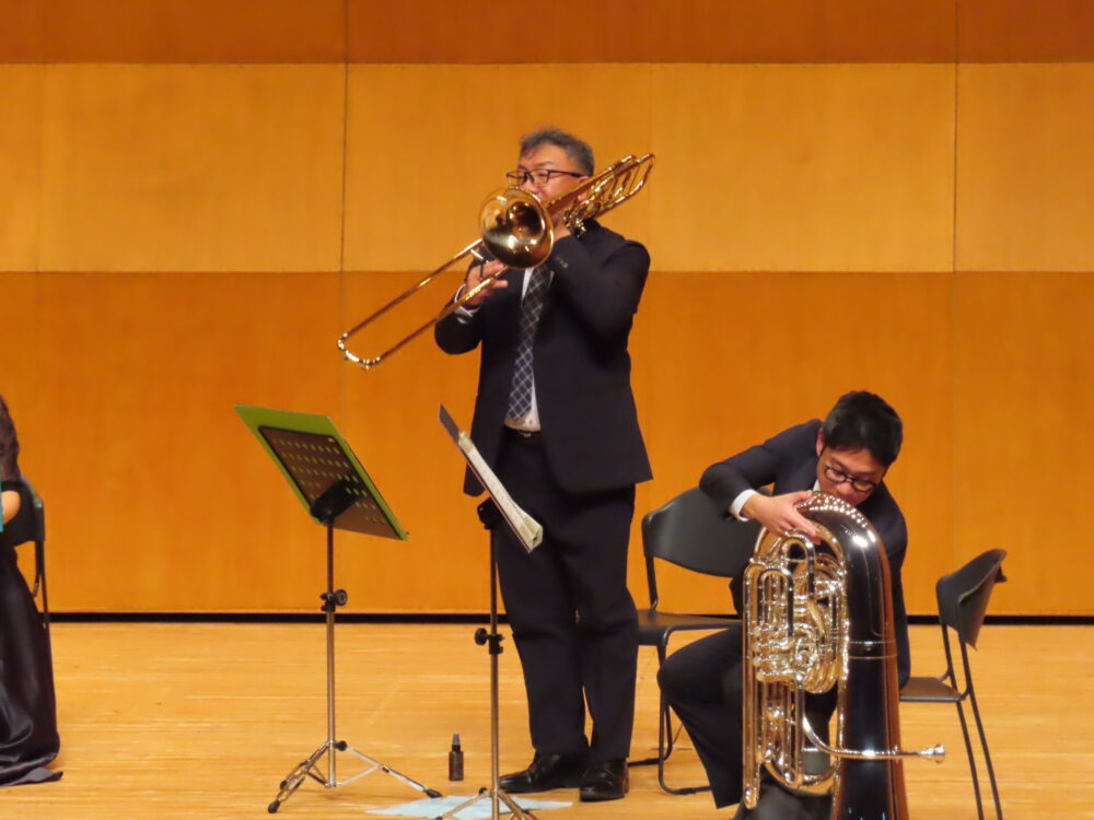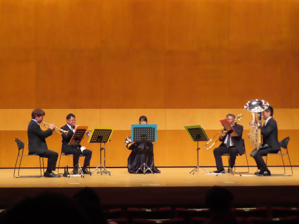 本日、YCC県民文化ホールにて、金管アンサンブルグループである「ハルモニア ブラス クインテット」に演奏していただきました。コンサートの終盤には中央高校の校歌も演奏していただき、金管五重奏の重厚な響きに酔いしれました。